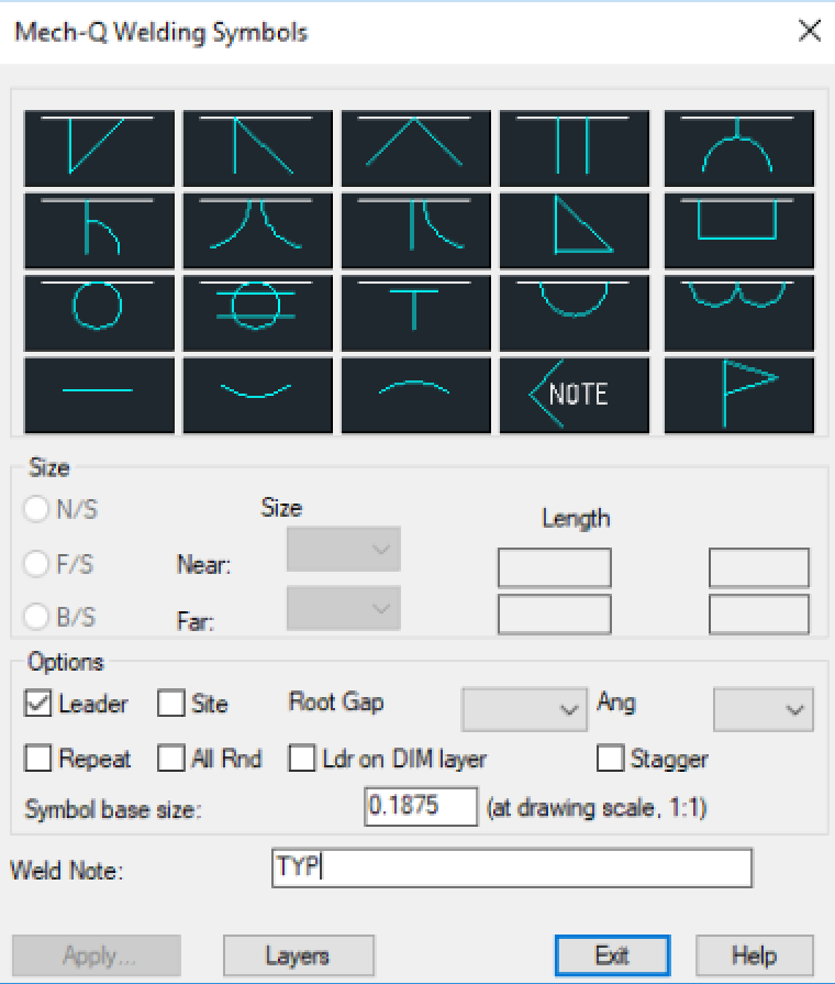• Welding note option